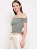 Make a bold statement with this stunning off-shoulder crop top. The smocked fabric creates an elegant textured pattern with delicate detailing throughout. Its stretchy, shirred design ensures a comfortable and flattering fit while the ruffled trim adds a feminine touch. The off-shoulder neckline with short sleeves creates a romantic silhouette perfect for casual outings or dressy occasions. The cropped length pairs beautifully with high-waisted jeans, skirts, or shorts. The vibrant colour makes it an eye-catching piece for your wardrobe. The elasticated top and bottom hems provide secure wearing comfort. This versatile top can be dressed up or down depending on the occasion, making it a must-have fashion staple for the modern wardrobe. The lightweight fabric makes it ideal for warm weather, while the fitted silhouette flatters various body types.